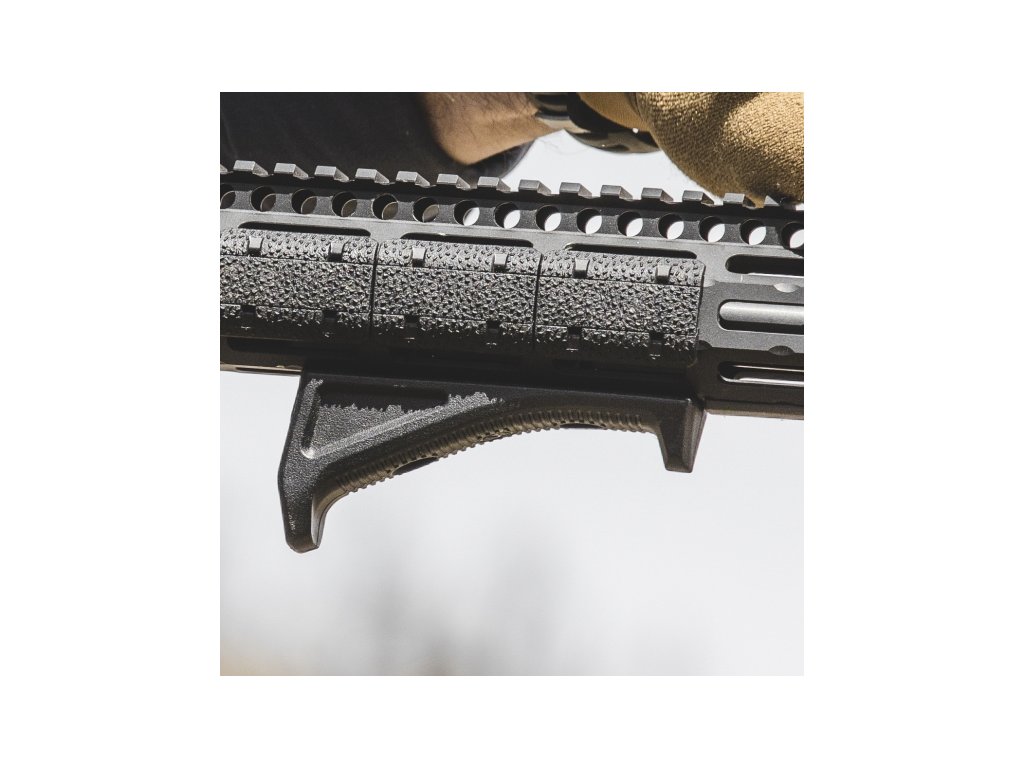 Rukoväť Magpul M-LOK AFG (Angled Fore Grip) je výsledkom výskumu a vylepšení pôvodných modelov AFG a AFG-2. Integráciou systému priameho uchytenia M-LOK s minimalistickou konštrukciou sme dokázali vyrobiť vysoko pevnú rukoväť, ktorá váži iba 30 gramov vrátane hardvéru. Vďaka širšej škále možností montáže je M-LOK AFG o ¾ palca kratší ako AFG-2, pričom si zachováva podobnú plochu úchopu. Aj keď je M-LOK AFG kompaktnejší ako jeho predchodcovia, zohľadňuje prirodzenú mechaniku tela, aby poskytoval pohodlné a stabilné používateľské rozhranie, ktoré znižuje únavu a umožňuje presnejšie ovládanie zbrane. Umiestnením ruky strelca vysoko na stredovú čiaru hlavne, na rozdiel od konvenčných vertikálnych predpažbí, pomáha M-LOK AFG zmierniť spätný ráz a ovládať zbraň, čo umožňuje rýchlejšie a presnejšie následné výstrely.