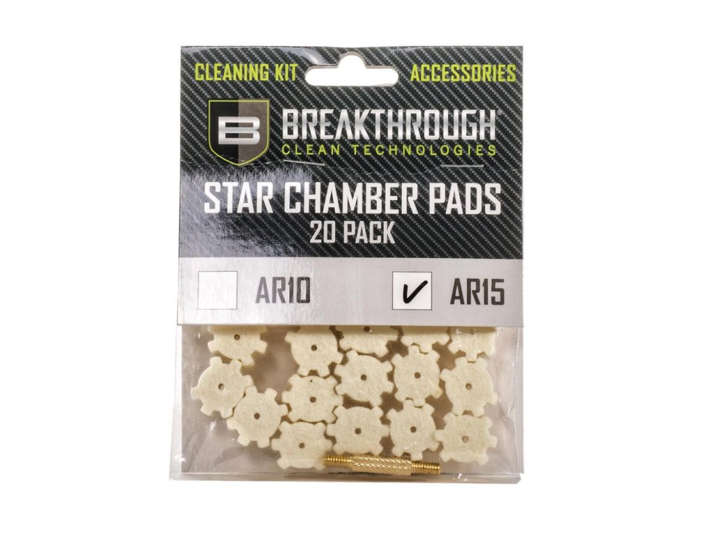 Prémiové hviezdicové podložky Breakthrough Clean Technologies® vám poskytujú presný nástroj na čistenie ťažko dostupnej komory AR15.