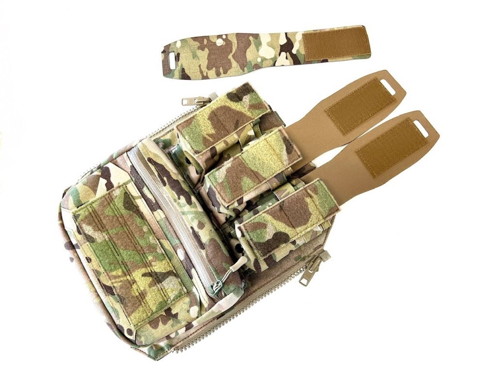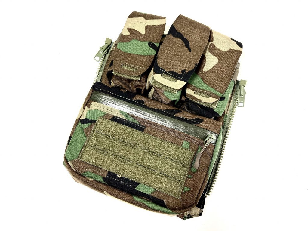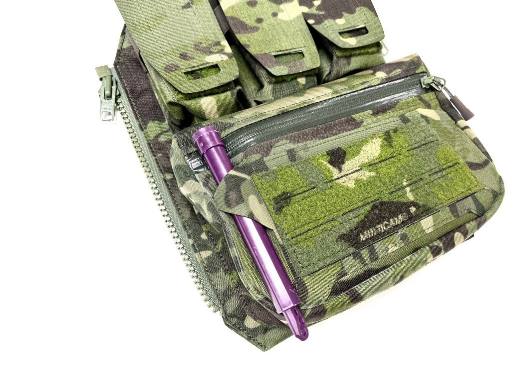 Panel disponuje v hornej polovici tromi kapsami, ktoré sú dostatočne objemné na to, aby pojemly dva zásobníky do AR15, veľký dýmový granát (NATO) alebo obdobie veľké vybavenie. Navyše sú chlopne, tak ako u našich O/C kapes vyjímateľné na taký zips a možno tak regulovať dĺžku chlopne alebo chlopeň úplne sejmout. Kompresi zabezpečujú po obvode kapsy 1" široká pruženka.