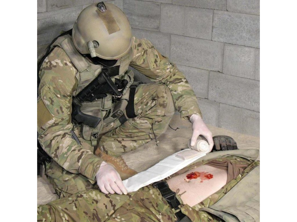 Nepriľnavé sterilné krytie umožňuje obaliť amputácie, popáleniny, či rozsiahle poranenia šrapnelmi. Veľká plocha krytia umožňuje prekryť celú prednú, alebo zadnú časť hrudníka s jedným obväzom.
