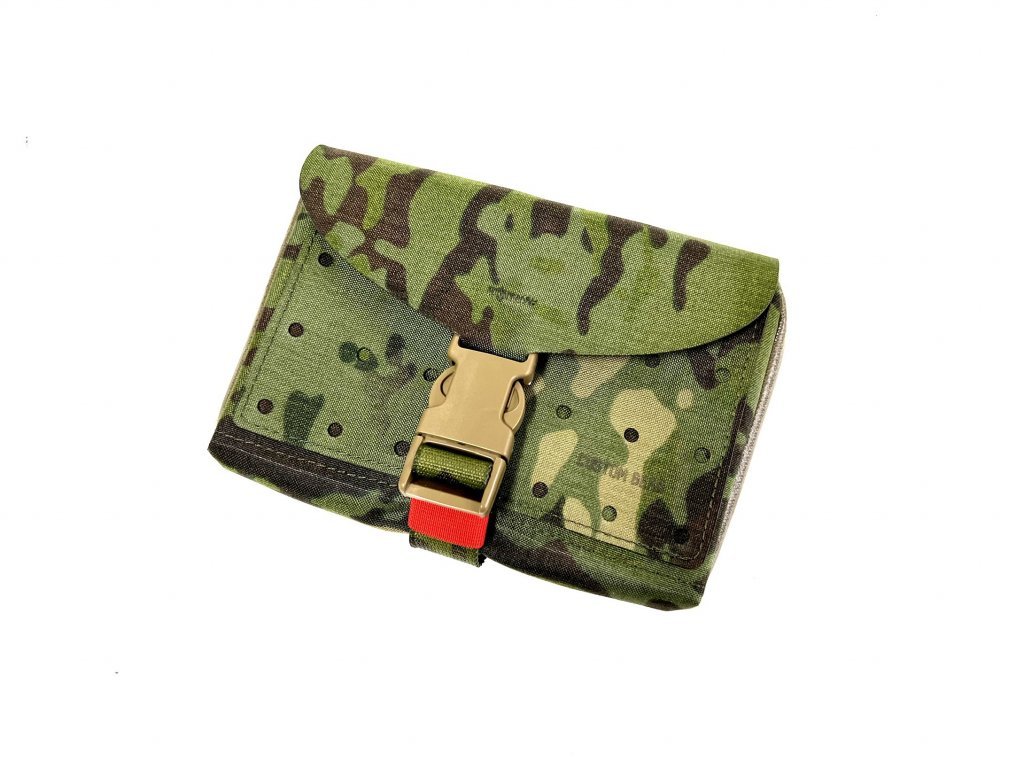 Osobný nízkoprofilový IFAK na vlastnej Velcro platforme istený ITW Nexus sponou as plne modulárnym systémom organizácie vybavenia.