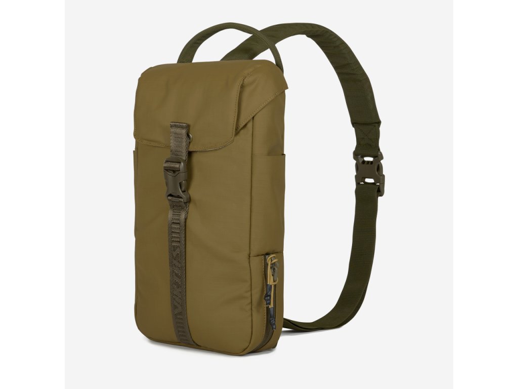 Odolné ripstopové šasi je odolné voči poveternostným vplyvom a škvrnám a má magnetické odtrhávacie chlopne pre čisté tasenie. Vnútri tašky je suchý zipsový držiak, ktorý umožňuje pripevnenie dodávaného puzdra Hookie™ a náhradného nosiča zásobníkov. Bočné vrecká umožňujú rýchly prístup k EDC a zadné vrecko sa zmestí do mäkkého brnenia IIIA (predáva sa samostatne).
