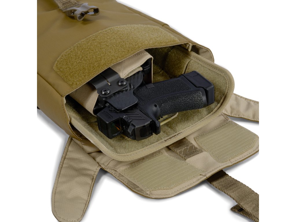 Taška na zbrane Counteract™, navrhnutá tak, aby spĺňala potreby osobnej ochrany, predstavuje dokonalú možnosť nosenia mimo tela. Taška Counteract je postavená na výsuvnom suchom zipsovom držiaku, ktorý umožňuje prispôsobenie výbavy, viacero možností puzdier a rýchly prístup k vašej zbrani.