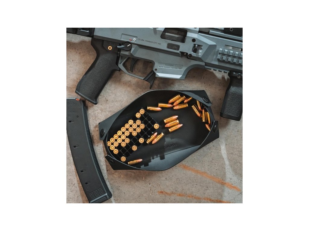 Naše poľné podnosy, vyrobené z nášho odolného materiálu DAKA, majú odolnosť, pružnosť a pevnosť, ktoré dokážu odolať aj tým najextrémnejším podmienkam. Jednoduchým zaklapnutím štyroch rohov plochého podnosu k sebe vytvoríte obmurovaný uzavretý pracovný priestor, ktorý udrží vaše predmety v jednom uzavretom priestore. Vnútro poľného podnosu zbavuje nečistoty, olej a nečistoty pre náročné použitie. Silný magnet umiestnený pod ikonou Magpul udrží malé kovové predmety, ako sú pružiny, čapy, kolíky a skrutky, čím zaistí, že nestratíte nič dôležité pre vašu prácu. Keď sa poľný zásobník nepoužíva, možno ho odopnúť a uložiť ho naplocho. Je ideálny pre puzdrá na zbrane, batohy a tašky.