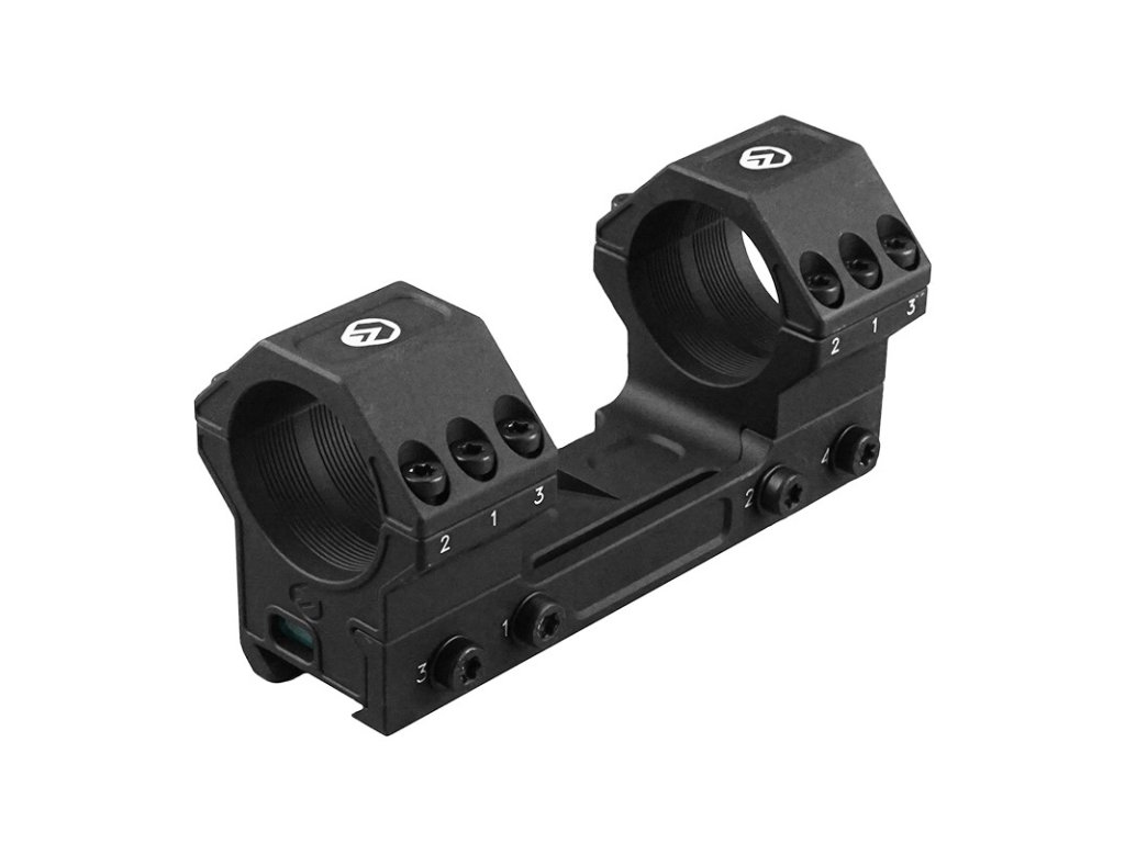 Multikontaktný antiskrutný systém Vyrobený z ľahkej zliatiny 6082 a 7075 s čiernou eloxovanou matnou povrchovou úpravou, odolný proti opotrebovaniu a antireflexný Integrovaná úroveň kontroly náklonu viditeľná pre strelca.