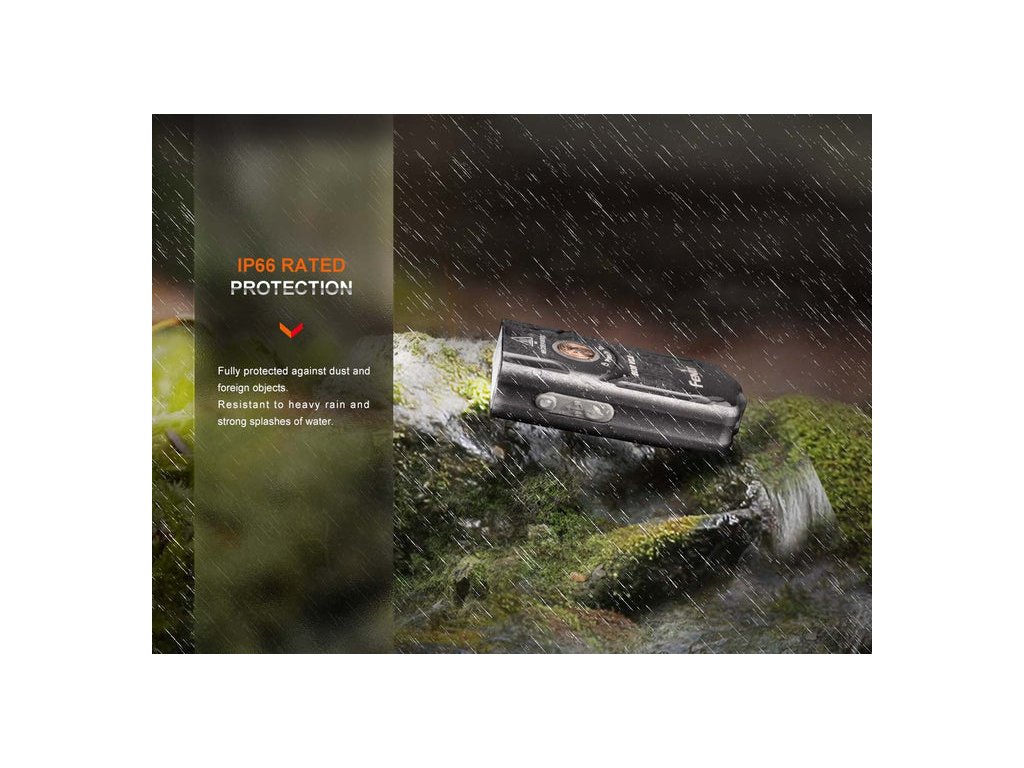 Táto baterka je vďaka svojej celokovovej konštrukcii a krytiu IP66 odolná, vďaka čomu je odolná voči striekajúcej vode a prachu.