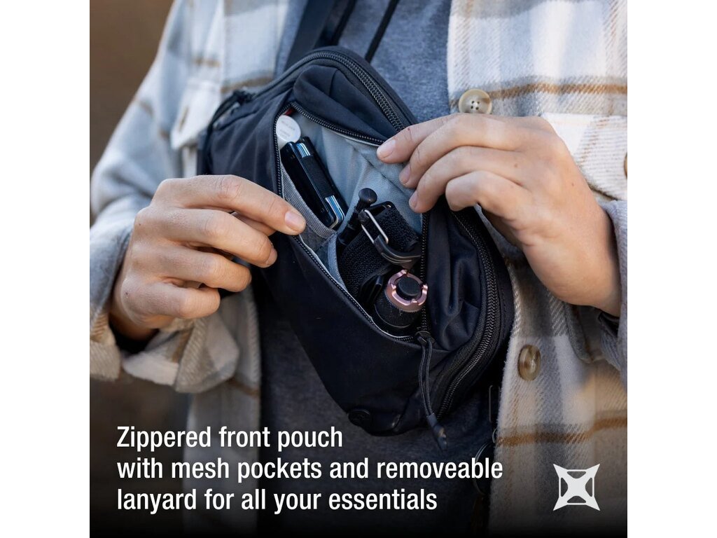 - Zostaňte organizovaní: Predné vrecko na zips obsahuje odnímateľnú šnúrku na kľúče a sieťované vrecká, ktoré vám poskytujú jednoduchý prístup k vašim každodenným nevyhnutnostiam.