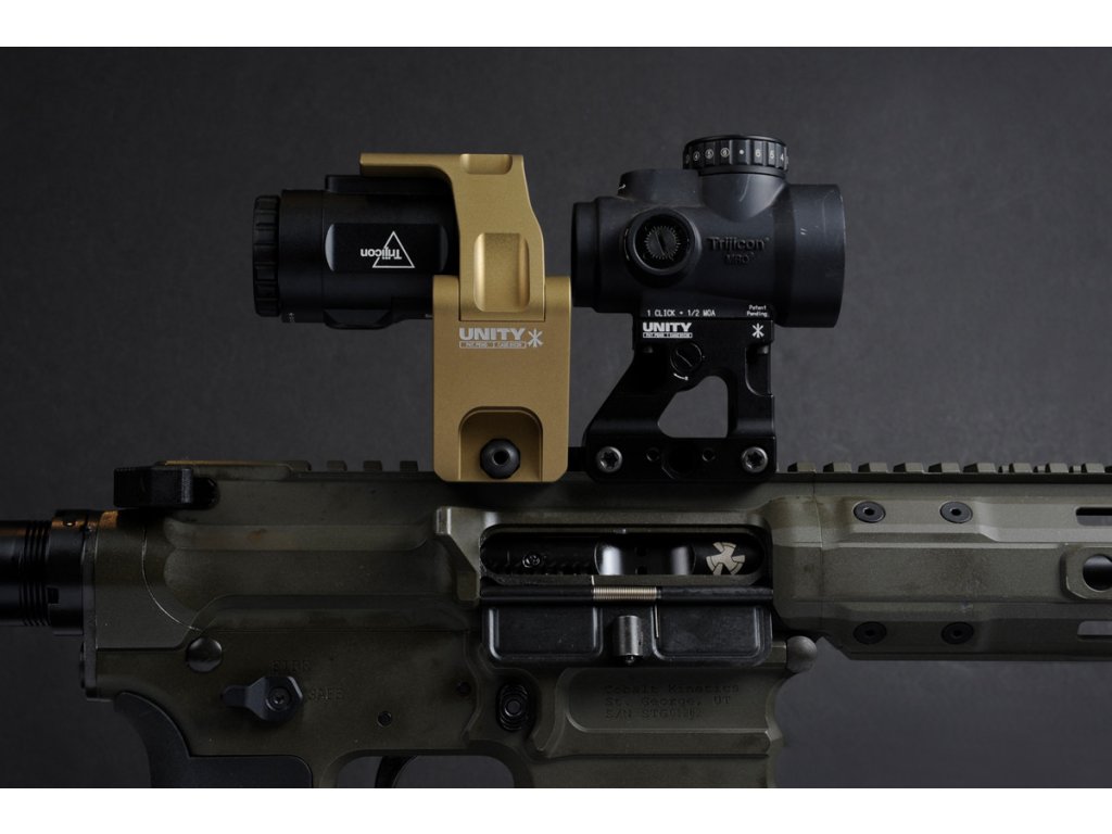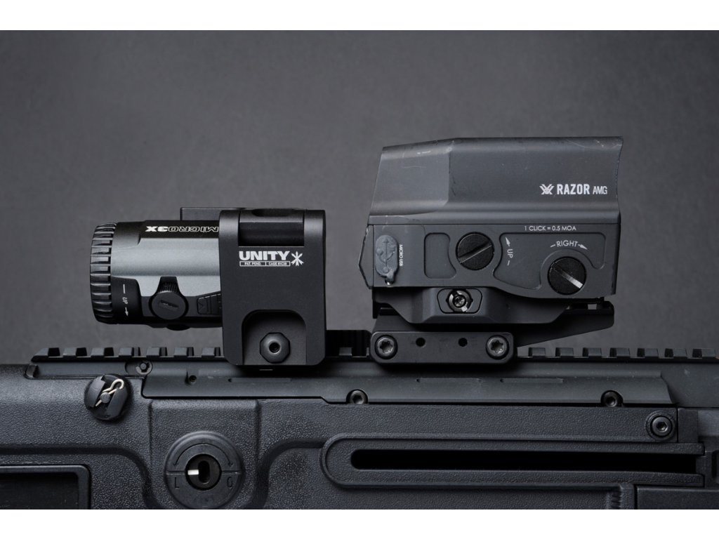 Držiak lupy FAST™ FTC OMNI využíva jednoduchý mechanizmus na prekonanie sily, ktorý ukladá lupu pod rovinu optického zameriavača a úplne v rámci záberu prijímača zbrane, keď sa nepoužíva. Technológia FTC (flip-to-center) UNITY™ Tactical eliminuje umiestňovanie starších produktov preklápaním na stranu, takže používatelia získajú všetky výhody zväčšenia, keď je to potrebné, bez rizika zaseknutia alebo zakrytia obrazu, keď je zložený. FAST™ FTC OMNI spolupracuje s rôznymi populárnymi lupami od rôznych výrobcov a štandardne sa dodáva s pákou FAST™ QD.
