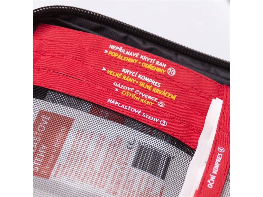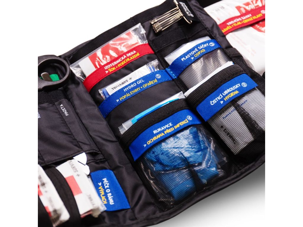 Lekárnička má odolný obal, kvalitné YKK zipsy a je kompatibilný s MOLLE systémom. Celý obsah je v češtine, vrátane návodov, popisov a príručky prvej pomoci. K dispozícii je aj mobilné aplikácie iFirstAid zadarmo.