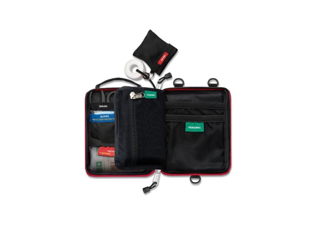 Každá položka má svoje pevné miesto, vrecká sú plytké a prehľadné a textové štítky vám napovedajú, aký materiál použiť. To výrazne uľahčuje orientáciu aj vo chvíľach, kedy je potrebné konať rýchlo. Small KIT tak podporuje rýchlu, sebavedomú a logickú reakciu v krízovej situácii, aj keď nemáte žiadne zdravotnícke skúsenosti.