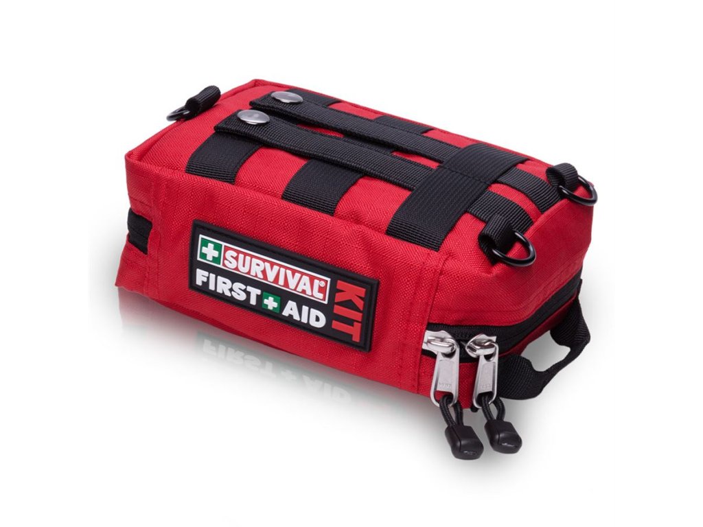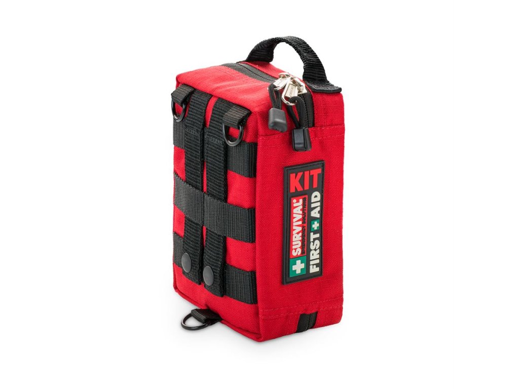 SURVIVAL First Aid KIT – Small je najkompaktnejšia lekárnička z celého radu SURVIVAL, navrhnutá pre každodenné nosenie aj rýchle použitie na cestách. Napriek tomu, že je malá, prekvapí svojim premysleným systémom: výbava je rozdelená do farebne označených sekcií podľa typu zranenia a každé vrecko má jasne čitateľný popis, vďaka ktorému okamžite viete, kam siahnuť.