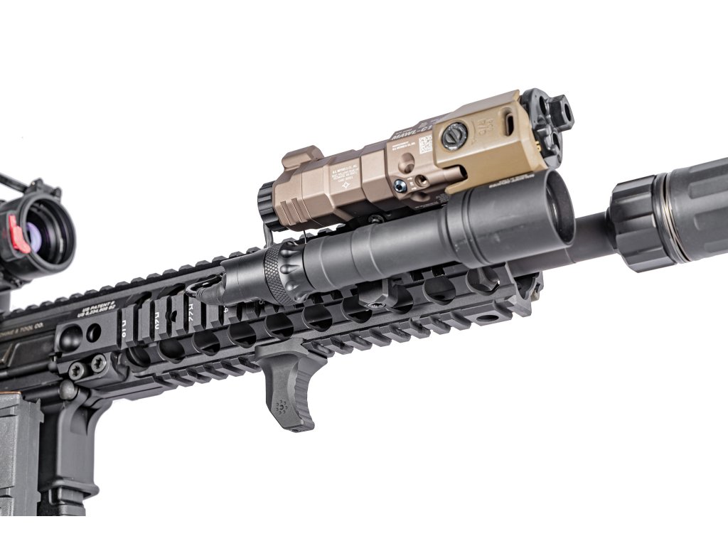 Šírka: 3,1 cm pri upínacom uchytení Picatinny, 1,8 cm pri hlavnom rozhraní, kde sa dotýka vaša ruka alebo prsty.