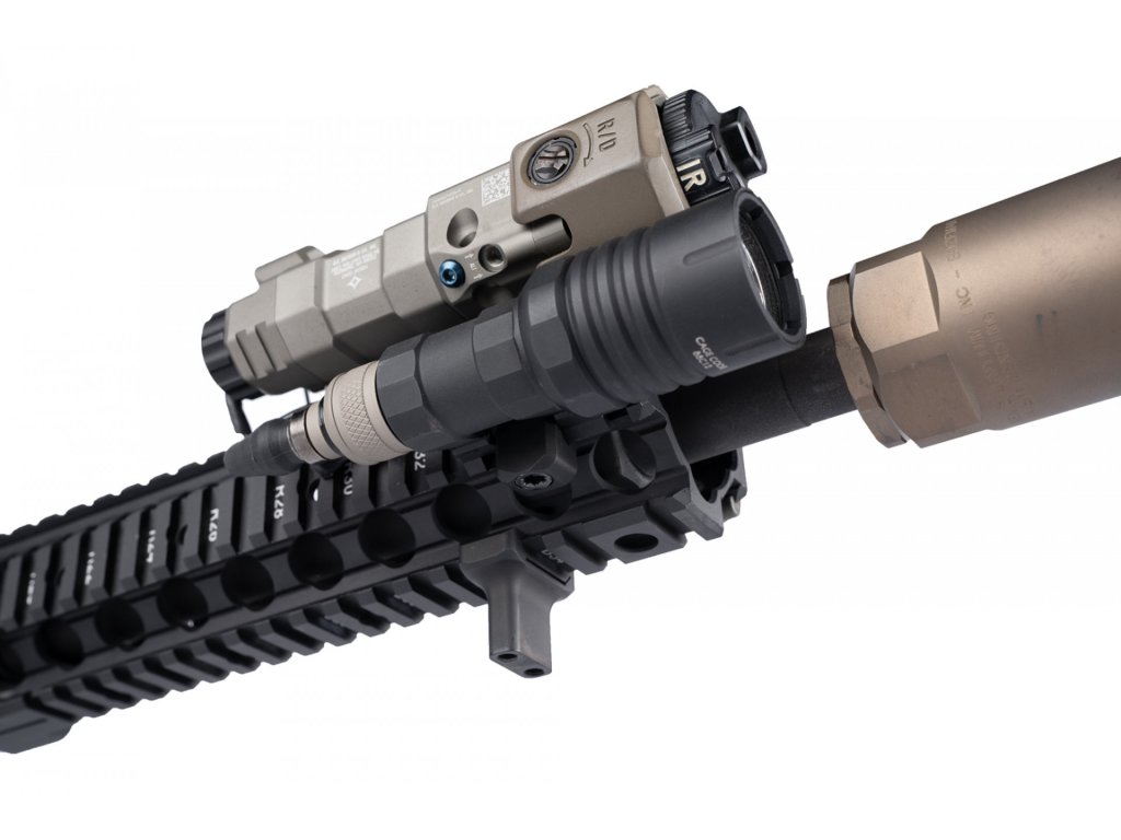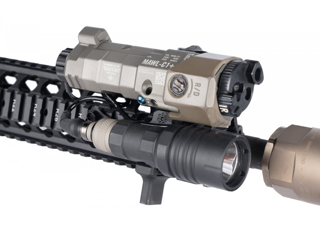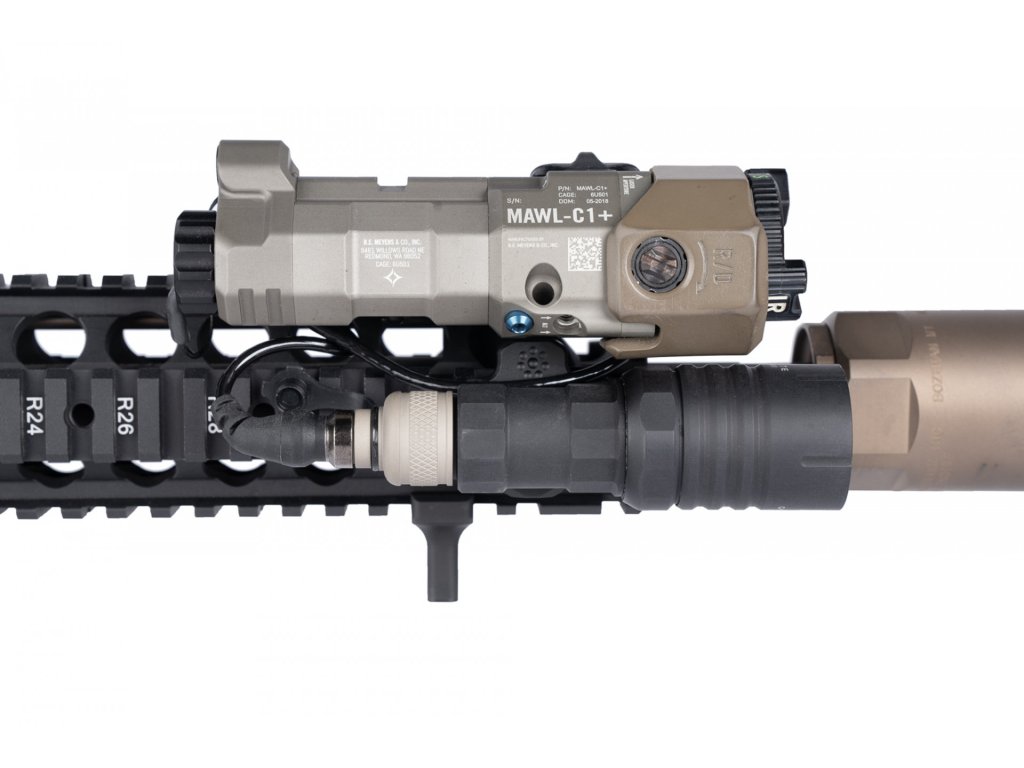 Nahrádza sériový koľajnicový adaptér Picatinny s nízkoprofilovým držiakom, ktorý zasúva svetlo pod obe strany B.E. Séria laserových/iluminátorov Meyers MAWL. Tri polohy na držiaku umožňujú svetelným hlavám s rôznym priemerom pripnuti pod MAWL bez rušenia.
