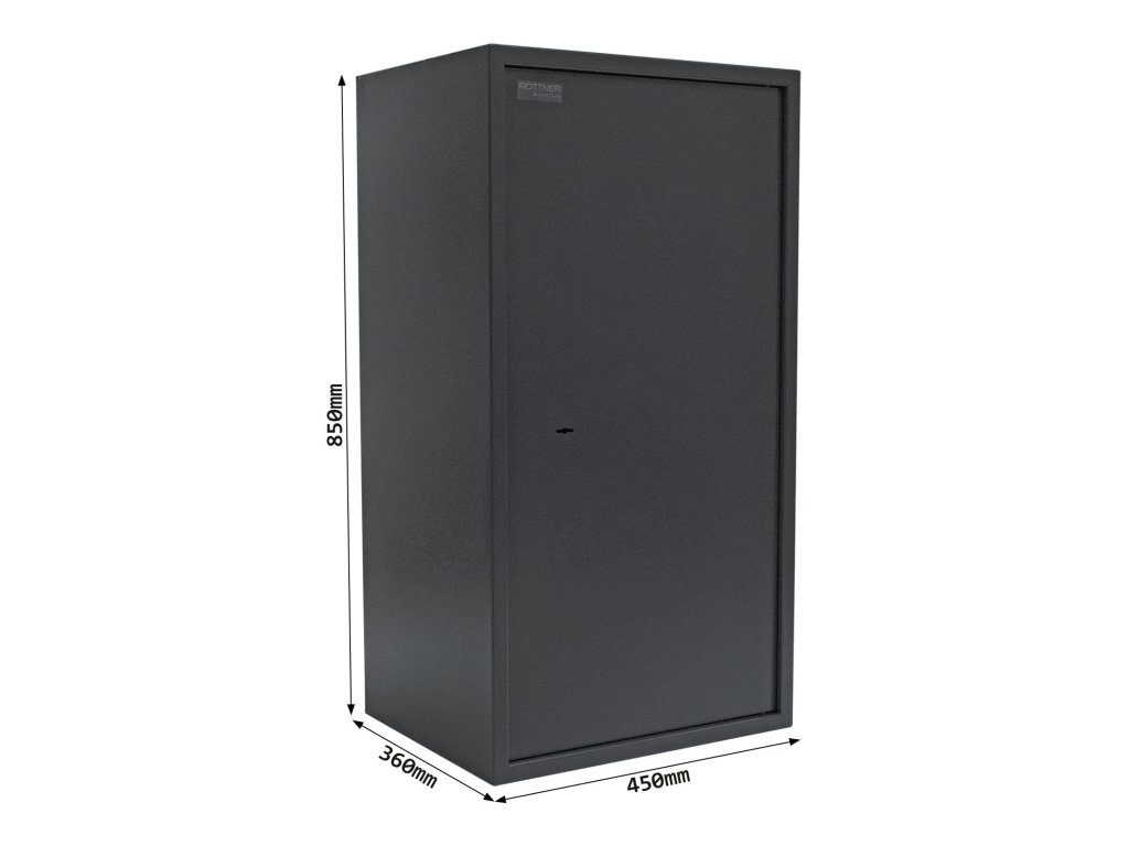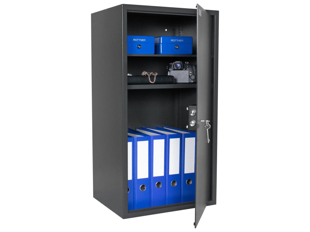 Nábytkový sejf z modelovej rady Jupiter má klasický trezorový zámok dodávaný spolu s 2 kľúčmi. Vo vnútri sejfu nájdu svoje miesto malé cennosti, doklady, hodinky alebo menšie šperky. Sejf je možné ukotviť prostredníctvom pripravených otvorov na spodnej aj zadnej strane. Materiál na ukotvenie je súčasťou balenia.
