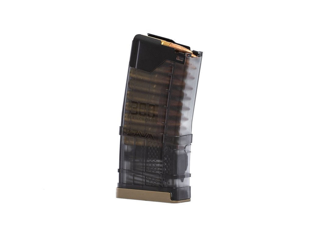 Zásobník Lancer L5AWM® 300BLK, špeciálne navrhnutý na použitie s ťažkou podzvukovou muníciou .300 Blackout (200+ grainov), má aktualizovanú vnútornú geometriu, ktorá umožňuje správne stohovanie dlhších ťažších nábojov, čím sa zvyšuje spoľahlivosť podávania v porovnaní s tradičným zásobníkom .223/5,56. .