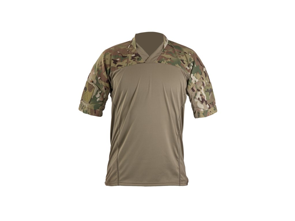 Ľahký materiál použitý na trupe a pod pazuchami zabezpečí, že zostanete v chlade pod nosičom plátov, zatiaľ čo robustný materiál na rukávoch, ramenách a za krkom umožňuje nosenie ťažkých batohov, výstroja a popruhu na zbraň. Zvýšený golier chráni pokožku pred odieraním.