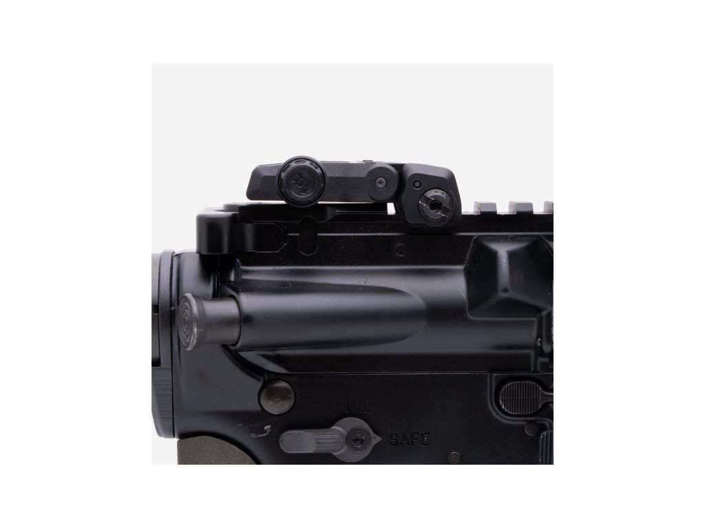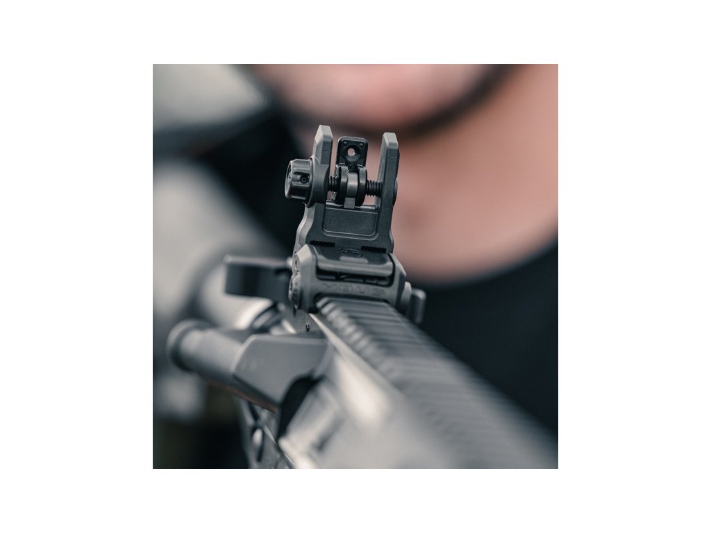 Mieridlo MBUS 3 je v rozloženom stave v štandardnej výške AR a obsahuje systém nastaviteľnej clony s rýchlym výberom stranového odklonu.