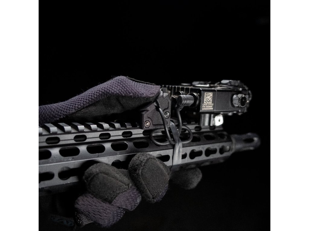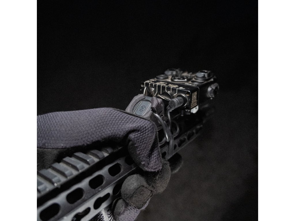 Ergonomický spôsob, ako na predpažbie upevniť ModButton™ Lite- 35 stupňový náklon tlačidla umožňuje pohodlnejšie stáčanie pri C-clampe a vďaka zvýraznenej hrane je palec usmernený presne na tlačidlo.