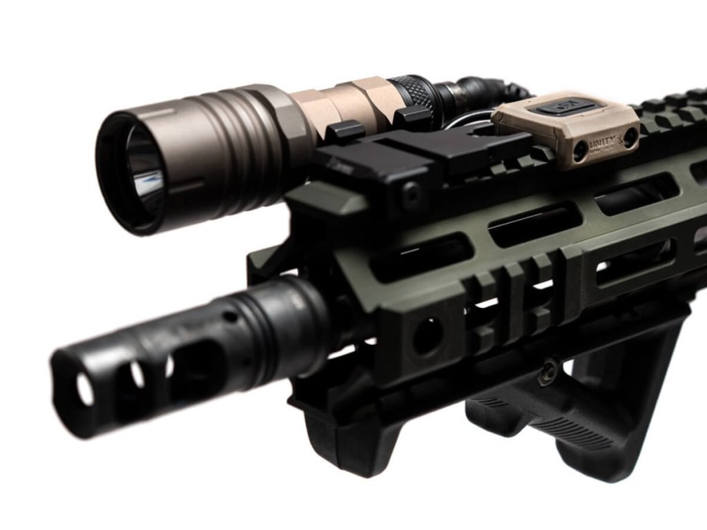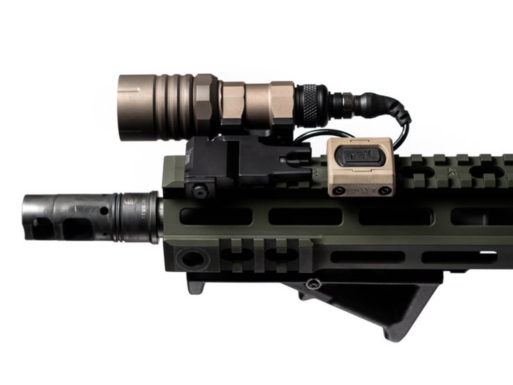 ModButton™ Lite je navrhnutý a patentovaný spoločnosťou UNITY™ Tactical. Vyrába sa exkluzívne pre značku Modlite a podporuje dodávku energie potrebnej pre ďalšiu generáciu vysokovýkonných zbraňových svetiel. Je kompatibilný so systémom UNITY LINK™ a zadnou krytkou GASCAP™ USB-C. Káblové vedenie kompatibilné so SureFire® vyrobené v UNITY umožňuje, aby bol ModButton™ Lite spätne kompatibilný so všetkými telami SureFire®, Arisaka a Modlite Scout, ako aj s koncovkami SureFire® UE a DS00. Zástrčka žeriavového lasera MIL-STD sa hodí pre všetky štandardné laserové porty od L-3®, Steiner®, B.E. Meyers® atď. Možnosť s dvomi zvodmi podporuje systém LINK™ alebo SureFire® a žeriavový laser so štandardnými 7″ káblami. Voliteľná montážna súprava MLOK ® sa predáva samostatne.