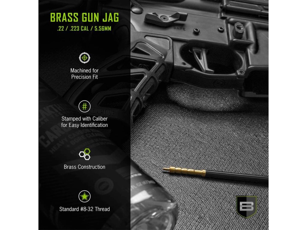 - NÁSTROJ NA ČISTENIE ZBRANÍ: Tento jag kalibru .22 / .223 / 5,56 mm je vyrobený z mosadze, je opracovaný pre presné uloženie a je na ňom vyrazený špecifický kaliber. Veľkosť závitu je štandardná #8-32 a je určený na použitie s akýmikoľvek čistiacimi tyčami.