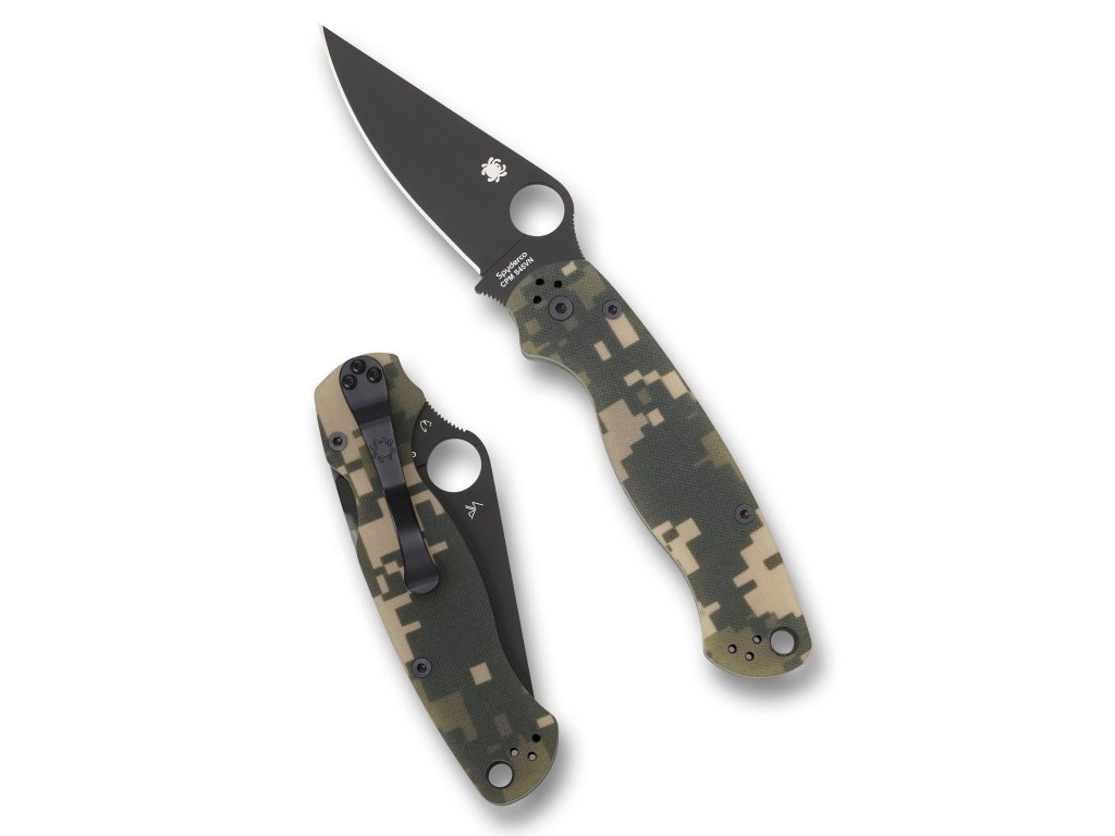 Aby bola Para Military 2 štíhla a pohodlná vo vrecku, má ľahkú konštrukciu s otvorenou zadnou stranou a jej skeletované vložky z nehrdzavejúcej ocele sú vložené do obrábaných priehlbín v rukoväti G-10 s textúrou odlupovacej vrstvy. Toto poskytuje vynikajúcu štrukturálnu oporu pre mechanizmus Compression Lock® noža, ktorý bezpečne zaisťuje čepeľ v otvorenej polohe počas používania a zároveň umožňuje jej jednoduché a bezpečné zatvorenie iba jednou rukou.
