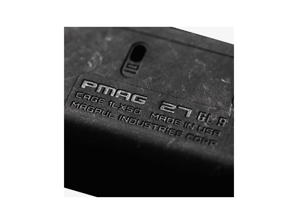 Zásobník PMAG 27 GL9 pre GLOCK kalibru 9 mm na 27 nábojov je vyrobený z našej vlastnej polymérovej konštrukcie pre bezchybnú spoľahlivosť a odolnosť po tisíce nábojov. Zásobník PMAG 27 GL9 spĺňa požiadavky na celkovú dĺžku pre súťažný zásobník kalibru 170 mm a ponúka dodatočnú kapacitu bez potreby drahých predĺžení.