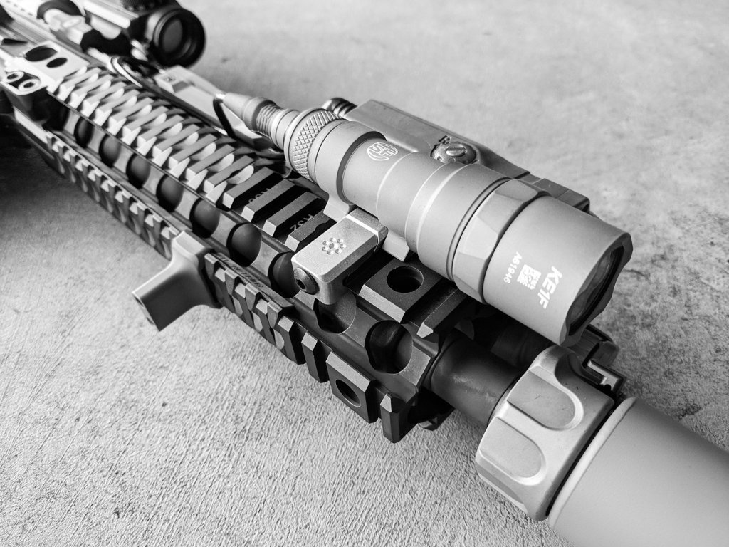 Na demontáž štandardného držiaka Picatinny zo svetiel Surefire Scout je potrebný kľúč T9 Torx. Odporúčaný krútiaci moment: 16,2 cm/lb pre telo svetla a 13,7 cm/lb pre upínaciu skrutku s nízko/stredne pevným zaisťovačom závitov (Loctite 222 alebo 243).