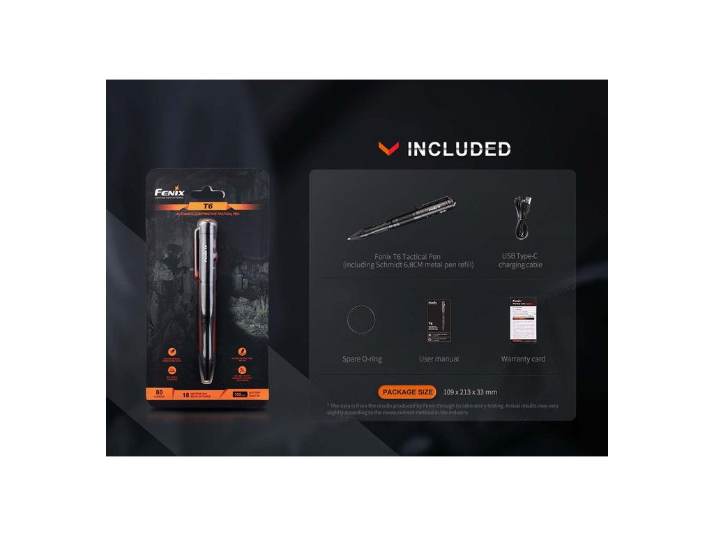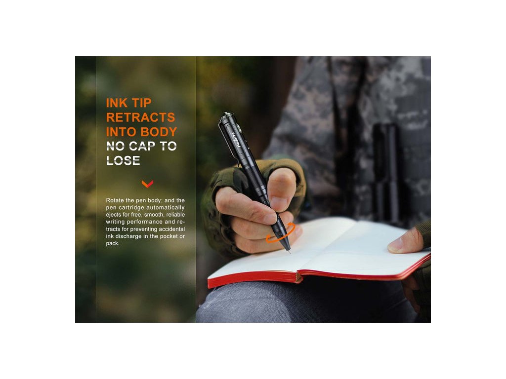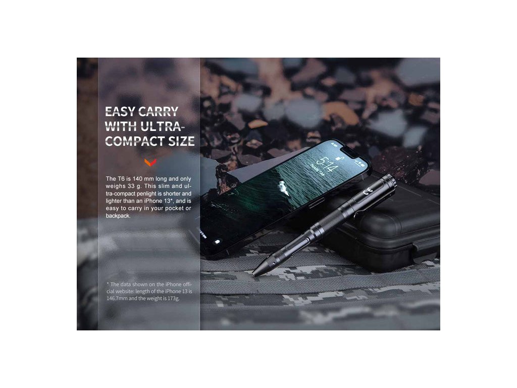 Taktické pero Fenix T6 nie je len vynikajúcim písacím nástrojom, ale je navrhnutý aj ako EDC baterka.