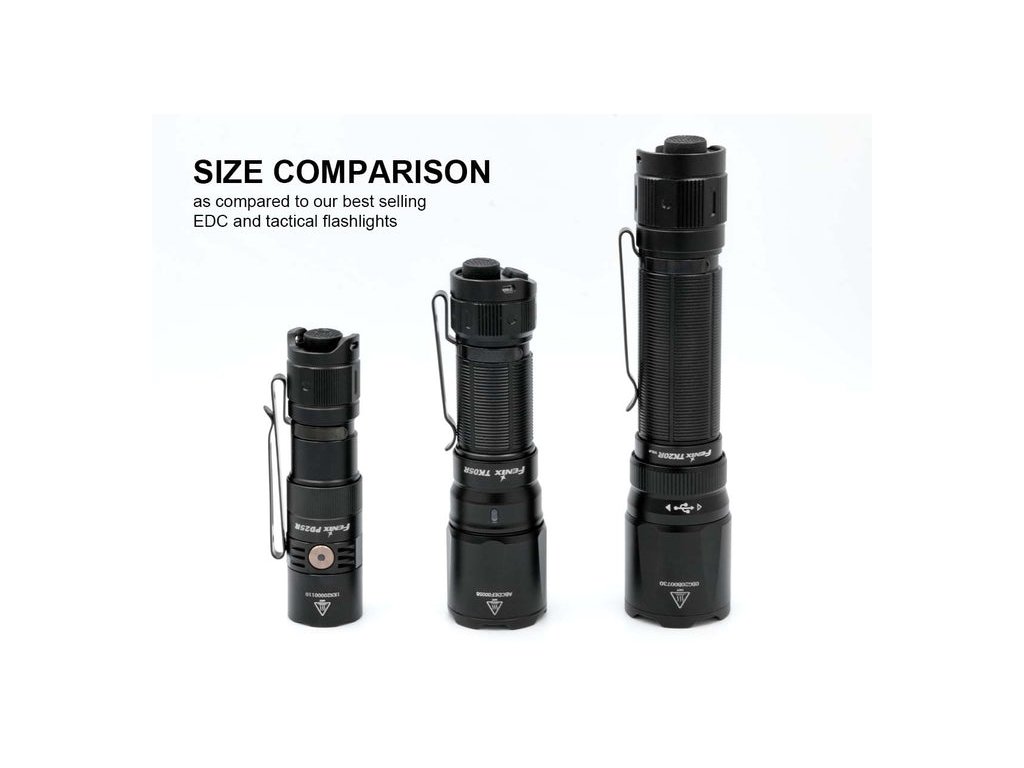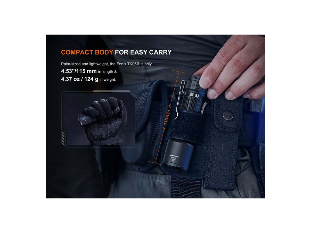 Taktické EDC svietidlo Fenix TK05R s dĺžkou iba 11,4 cm je takmer o 25 % menšie ako naše štandardné taktické svietidlá, vďaka čomu je skvelou veľkosťou na každodenné nosenie. Nebojte sa však obetovať veľkosť kvôli výkonu.