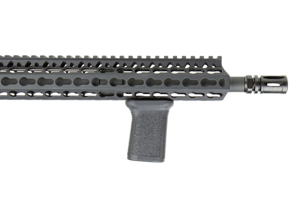 - Možno namontovať v opačnom uhle pre lepšiu kontrolu pri uchopení predpažbia a rukoväte.