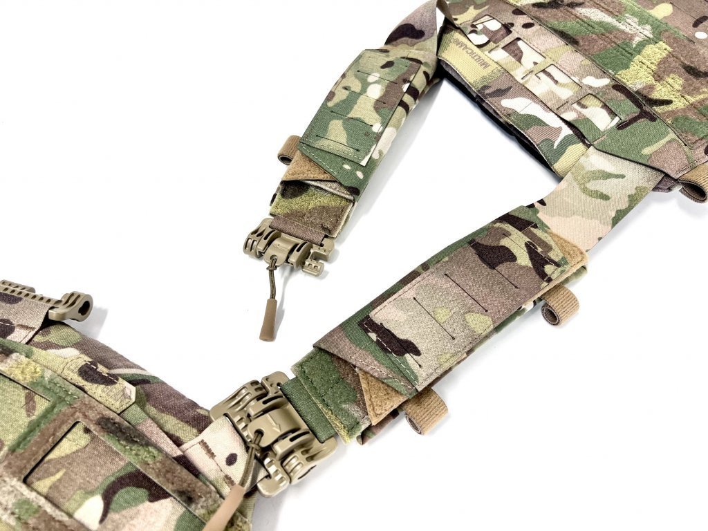 Prednosťou a úplnou ojedinelosťou je hrudná časť nášho nosiča. Tento systém, kedy na úplne bežnom tele nosiča sme ako úplne prví výrobcovia aplikovali KOMPOZITOVÝ MESH, slúži ako jeden veľký úchyt na všetko potrebné vybavenie. Tento MESH poskytuje extrémne veľkú plochu využiteľnosti a to konkrétne až 6x3 MOLLE väzby.