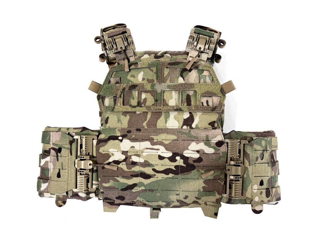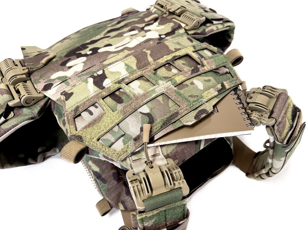 Prednosťou a úplnou ojedinelosťou je hrudná časť nášho nosiča. Tento systém, kedy na úplne bežnom tele nosiča sme ako úplne prví výrobcovia aplikovali KOMPOZITOVÝ MESH, slúži ako jeden veľký úchyt na všetko potrebné vybavenie. Tento MESH poskytuje extrémne veľkú plochu využiteľnosti a to konkrétne až 6x3 MOLLE väzby.