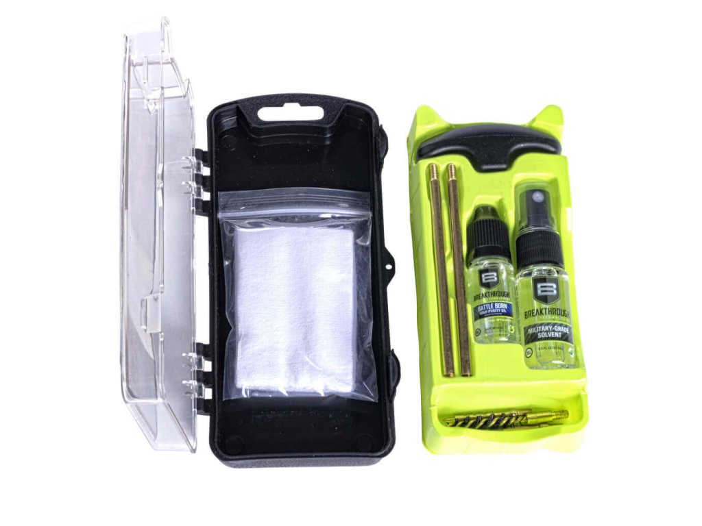 Tieto čistiace súpravy sa dodávajú s časťami čistiacich tyčí, rôznymi nylonovými kefami z tvrdých štetín, jag-mi, držiakmi handričiek a bavlnenými handričkami. Zahrnutá je aj naša odolná polymérna rukoväť „T“ pre ľahké uchopenie a naše malé fľaše Breakthrough® Military-Grade Solvent a Battle Born High-Purity Oil.
