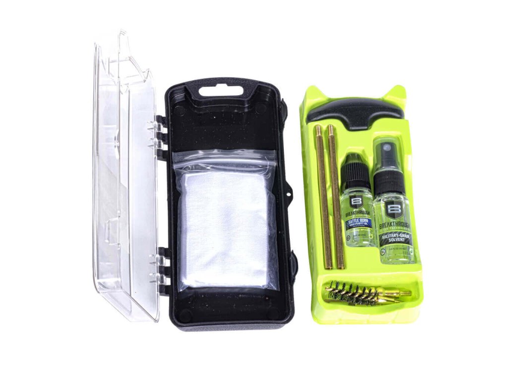 Tieto čistiace súpravy sa dodávajú s časťami čistiacich tyčí, rôznymi nylonovými kefami z tvrdých štetín, jag-mi, držiakmi handričiek a bavlnenými handričkami. Zahrnutá je aj naša odolná polymérna rukoväť „T“ pre ľahké uchopenie a naše malé fľaše Breakthrough® Military-Grade Solvent a Battle Born High-Purity Oil.