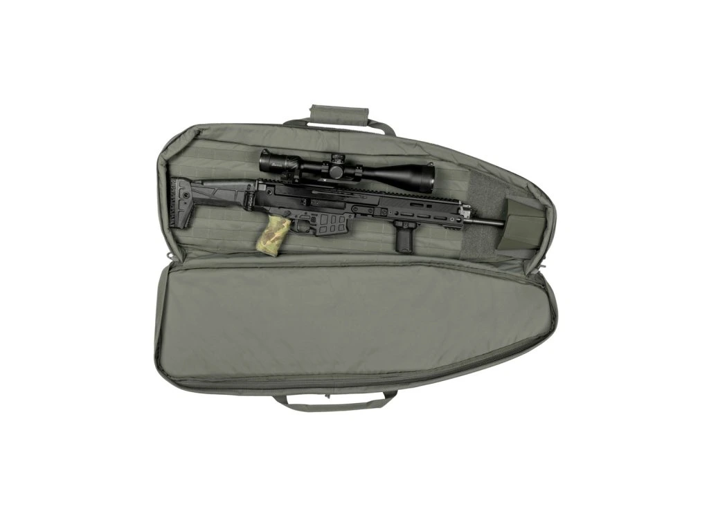 Okrem priehradky na zbraň má zbraňová taška TT MRW vonkajšiu priehradku s tromi pevne všitými puzdrami na zásobníky, priestory so suchým zipsom MOLLE pre individuálnu montáž a sieťované vrecko na zips.