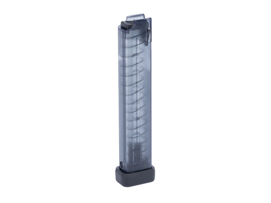 Keďže 30-ranový zásobník je vyrobený z vysoko pevného a polopriehľadného polyméru, môžete ľahko kontrolovať počet zostávajúcich nábojov v zásobníku.