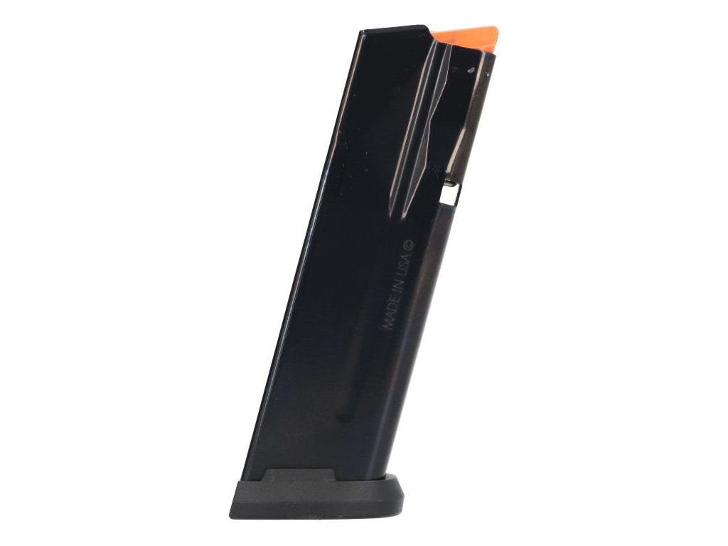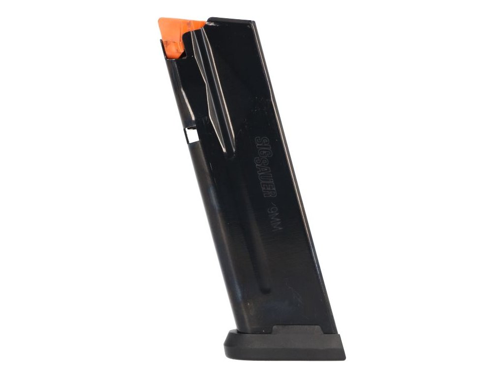 Oceľový zásobník z výroby na 17 rán pre pištoľ P365-XMACRO, ale pasuje aj na všetky modely P365 kalibru 9 mm. Tento zásobník má zadné otvory pre potvrdenie kapacity nábojov a oranžový ukazovateľ, ktorý uľahčuje jeho identifikáciu po vybití.